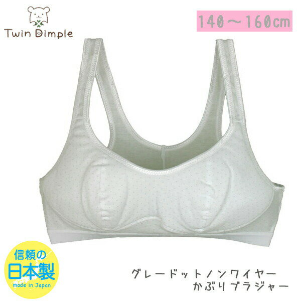 【日本製】グレードット柄ノンワイヤーかぶりブラ140/150/160 メール便OK 女の子 ジュニア ハーフトップ