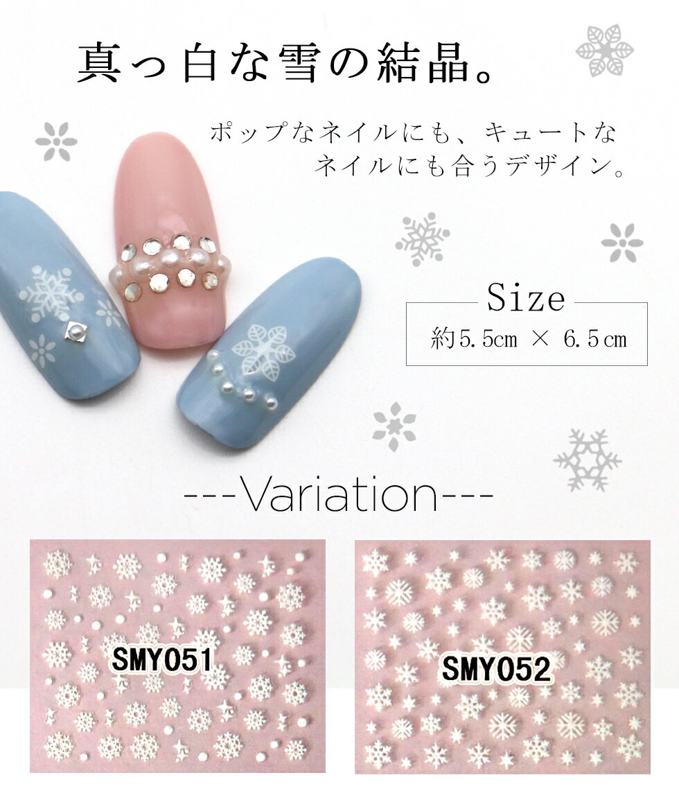 【商品説明】 商品名 ホワイトスノーフレーク Part2 ネイルシール 数量 1枚入り 大きさ 台紙サイズ 約5.5×6.5cm ●モニタやブラウザの関係で色が実物と異なって見える場合がございます。